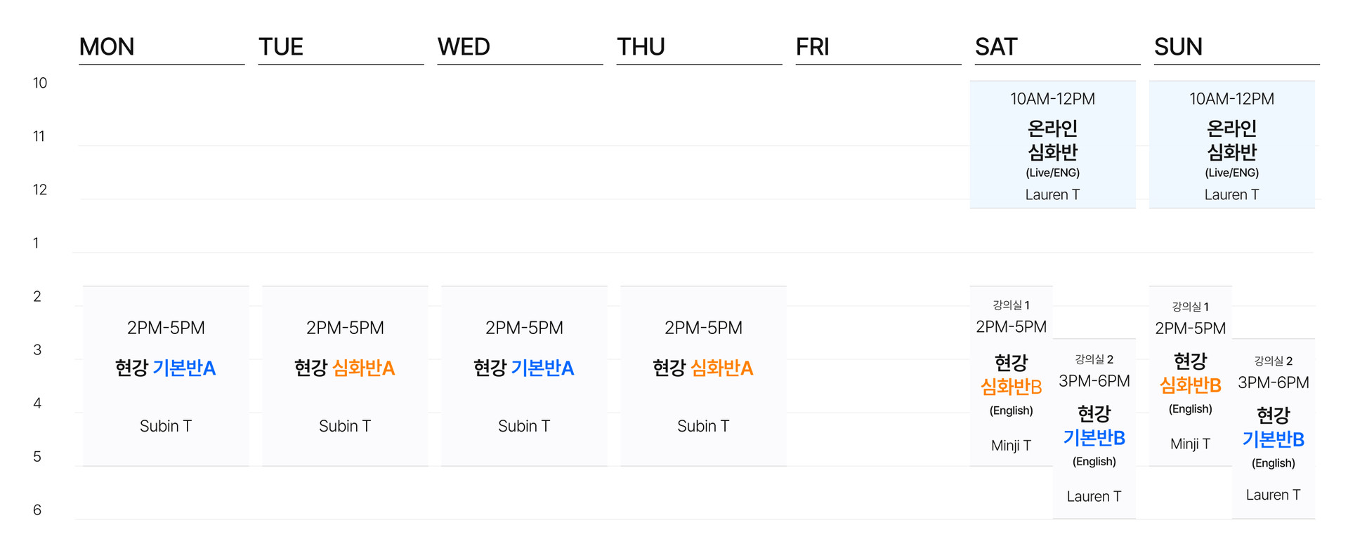 한국어·영어 수업 제공 (현강/온라인)